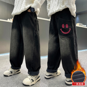 Tween Boy Velvet Denim Jeans Primavera Otoño Invierno Nuevas llegadas 2024 Large Kids Casual FleeceTrousers