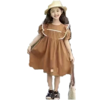 Vestido con cuello Peter Pan y mangas abullonadas para niña
